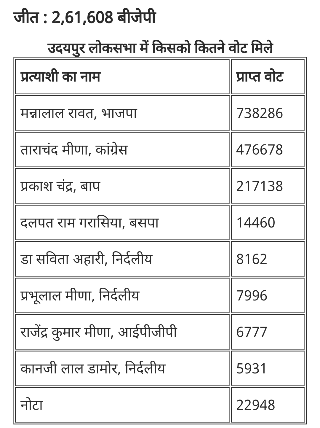 उदयपुर : RTO अधिकारी रावत ने पूर्व कलेक्टर मीणा को 2 लाख 61 हज़ार वोटो से हराया