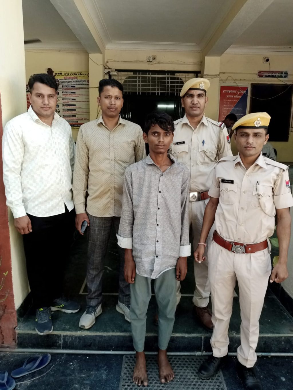 थानाधिकारी घनश्याम सिंह ने बताया की उक्त रिपोर्ट पर विशेष टीम गठित कर अभियुक्तों की तलाश प्रारंभ की गई । मुखबिर जरिए सूचना मिली कि कुछ लड़के मोबाइल बेचने के लिए घूम रहे है । जिस पर अनिल पिता लक्ष्मण मीणा उम्र 21 वर्ष निवासी बिलख गड़ावत फला को डिटेन कर पूछताछ की गई । पूछताछ के दौरान एक अन्य साथी के साथ मिलकर वारदात करना कबूल किया । जिस पर उक्त अभियुक्त को गिरफ्तार कर नाबालिग को डिटेन किया । जिनके कब्जे से चोरी हुए 6 मोबाइल जब्त किए ।