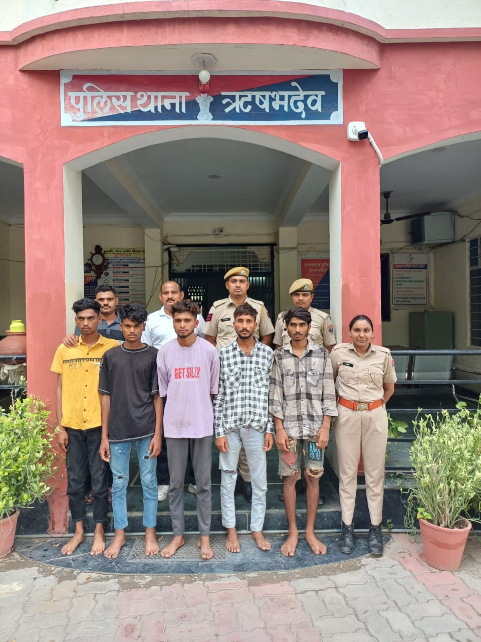 पुलिस टीम ने साहिल उर्फ सागर पिता लक्ष्मण मीणा निवासी बिलख किकावत फला आंगलिया पुलिस थाना ऋषभदेव, संजय पिता भगवानलाल मीणा निवासी बिलख किकावत फला आंगलिया ऋषभदेव, मनीष पिता गून्जारी लाल मीणा निवासी करनुउवा फला उपला खैरवाडा , अभिषेक पिता माणकलाल मीणा निवासी करनुउवा फला खेरवाडा, अविनाश पिता राजकुमार मीणा निवासी मसारों की ओबरी फला महुडी ऋषभदेव को गिरफ्तार किया।