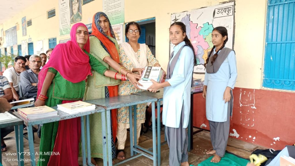 सरकारी विद्यालय में निशुल्क पाठ्यक्रम पुस्तक के वितरण