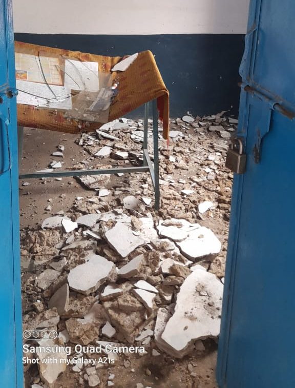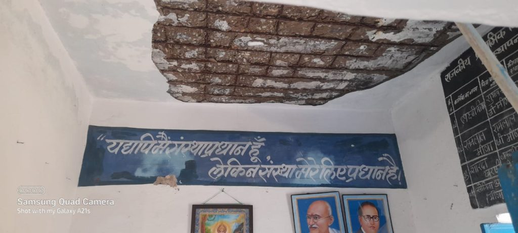 ऋषभदेव ब्लॉक के सरकारी विद्यालय में जर्जर छत का प्लास्टर गिरा, स्थानीय लोगों में आक्रोश
