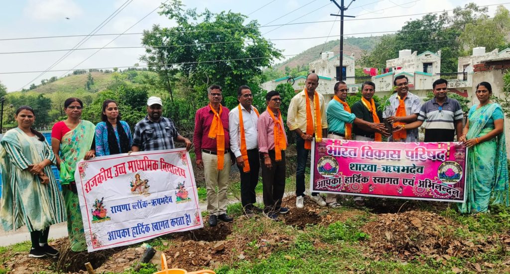 भारत विकास परिषद् शाखा ऋषभदेव ने मुक्ति धाम एवं रायना विद्यालय में किया वृक्षारोपण