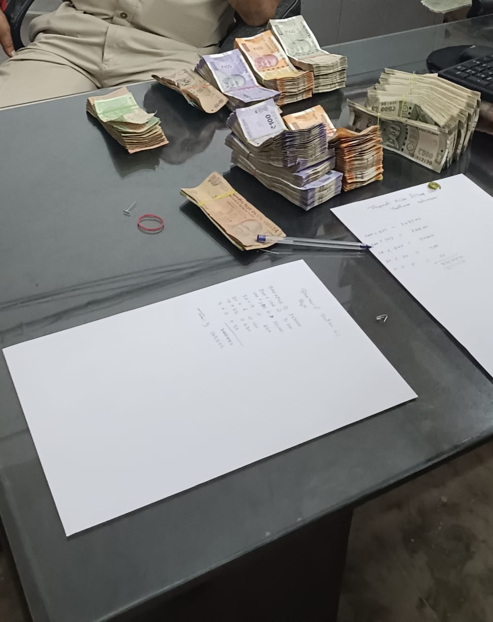 डीपी न्यूज नेटवर्क,सलुम्बर, नितेश पटेल। पुलिस अधीक्षक सलुम्बर राजेश कुमार यादव के निर्देशन में पुलिस थाना सलुम्बर ने कार्यवाही करते हुए विधानसभा उपचुनाव 2024 में पुलिस थाना सलुम्बर टीम द्वारा सांय को गणेश घाटी नाकाबंदी शुरु की गई दौराने नाकाबंदी आने जाने वाहनो को चैक कर रहे थे कि झल्लारा की तरफ से एक कार बरंग सफेद नम्बर आरजे 27 सीएम 2524 आती हुई नजर आई जिसे पुलिस थाना सलुम्बर टीम द्वारा रुकवाया व चैक किया तो उक्त कार में दो व्यक्ति बैठे हुए पाये गये जिनका नाम पता पुछा तो उक्त एक ने अपना नाम राकेश पिता शंकर लाल खटीक उम्र 27 साल निवासी लुणदा पुलिस थाना कानोड जिला उदयपुर व दुसरे ने अपना नाम हितेश पिता शंकरलाल खटीक उम्र 25 साल निवासी लुणदा पुलिस थाना कानोड जिला उदयपुर होना बताया व कार को चैक किया तो पिछे की सीट पर दो काले रंग के बैग रखे हुए थे जिनको चैक किया तो उनमे कुल 488075 चार लाख अठयासी हजार पिचत्तर रुपये को धारा 106 बीएनएसएस के तहत जब्त किया गया।