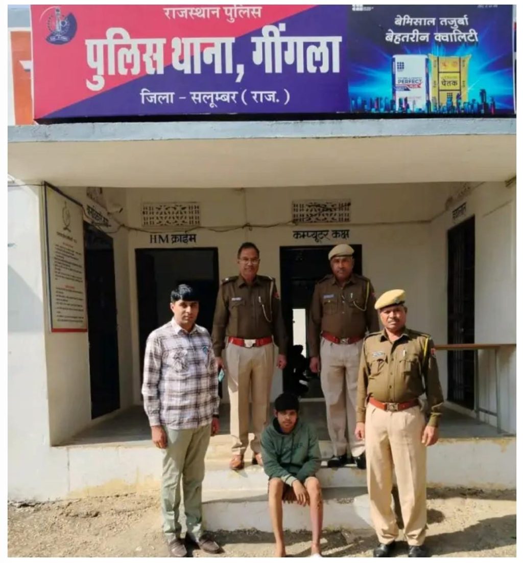 डीपी न्यूज नेटवर्क,सलूंबर, प्रकाश नागदा । राजेश कुमार यादव जिला पुलिस अधीक्षक सलुम्बर द्वारा जिले में सम्पति सम्बन्धी अपराधों की रोकथाम एवं अपराधियों की धरपकड हेतु दिये गये आदेश की पालना में बनवारी लाल मीणा अतिरिक्त पुलिस अधीक्षक जिला सलुम्बर के सुपरविजन व हेरम्ब जोशी वृताधिकारी वृत सलुम्बर के निर्देशन में थानाधिकारी रमेशचन्द्र अहारी थाना गींगला मय टीम के सर्कल के कानुपरा गांव में जंगल में भैंस चरा रही नाबालिक लड़की से छेड़छाड़ एंव मोबाईल लुट का फरार आरोपी ललीत कुमार पिता डुंगा मीणा उम्र 19 वर्ष निवासी कानपुरा पुलिस थाना गींगला जिला सलुम्बर को प्रकरण संख्या 119/2024 धारा 309(4),74,115 (2) बीएनएस एंव धारा 7, 8 पोक्सो एक्ट में दर्ज कर अनुसंधान प्रारम्भ किया गया अभियुक्त वारदात के बाद अहमदाबाद कि तरफ भाग गया था जिस पर मुखबिर से सुचना मिली कि आरोपी गांव कानपुरा में घुम रहा हैं जिसे अथक प्रयास कर डिटेन कर पुछताछ के बाद गिरफ्तार किया गया पीडीता कि रिपोर्ट जिसमे बताया कि दिनांक 21 सितम्बर 2024 को दोपहर करिब 01.15 बजे मैं हमारे गांव के दवेला नामी बीड में भैंसो का चरा रही थी तभी मेरे स्कूल में पढने वाले ललीत पिता डूंगा मीणा निवासी कानपुरा मुझे अकेली देखकर मेरे पास आया तथा मोबाईल से मेरा फोटो खींचा तो मैने विरोध किया तो उसने मेरे साथ लातो मुक्को से मारपीट की एंव मेरा फोन छिन लिया एंव भाग गया ।