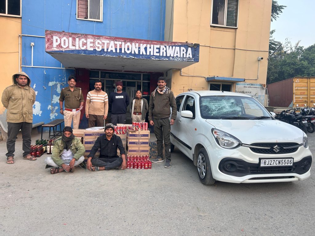 खेरवाडा : अवैध अंग्रेजी शराब से भरी एक कार जब्त,कुल 36 कर्टन अवैध शराब बरामद; दो आरोपी गिरफ़्तार
