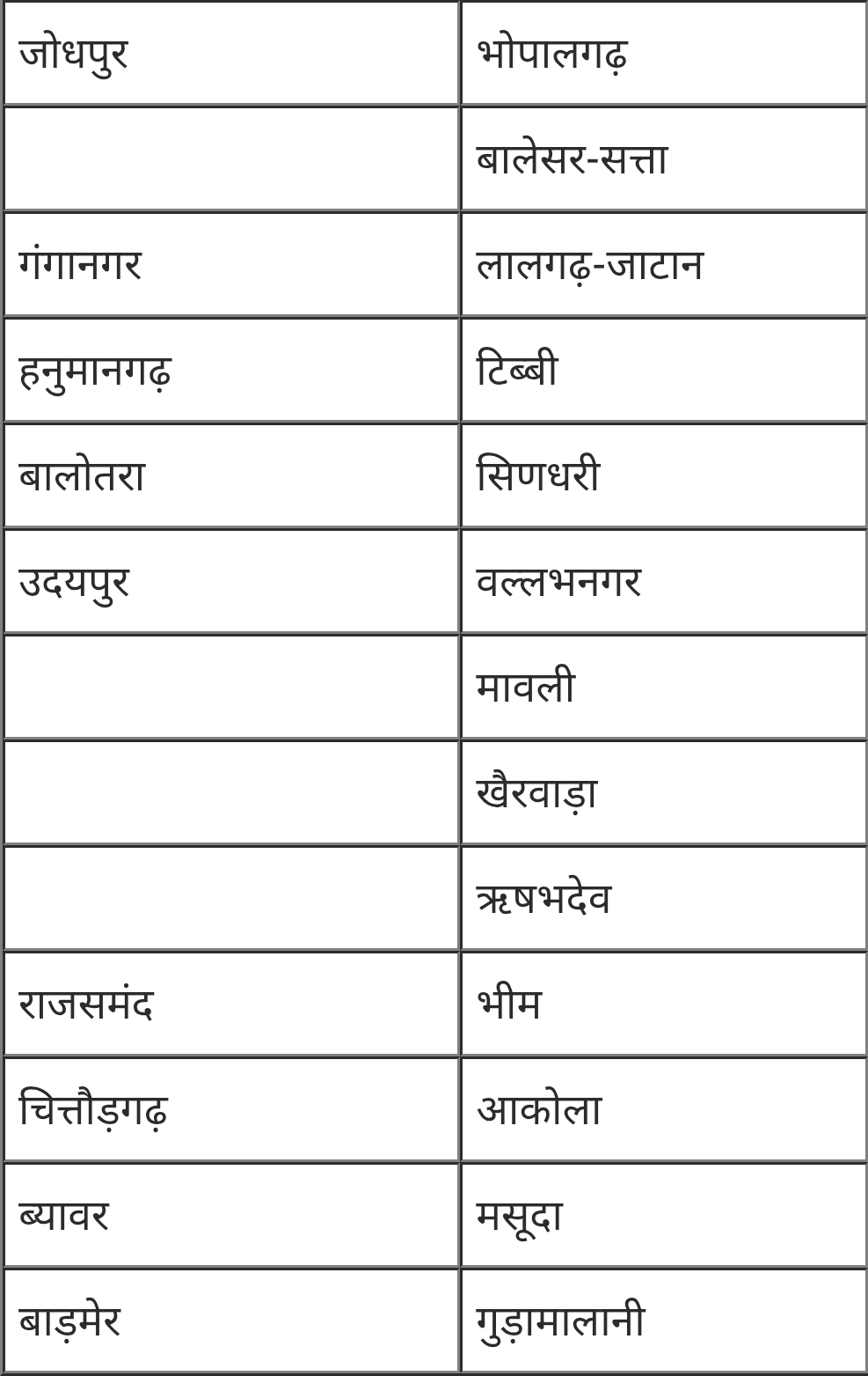 - हनुमानगढ़: टिब्बी, बालोतरा, सिणधरी