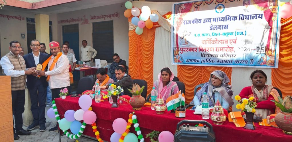 डीपी न्यूज नेटवर्क,परसाद,कमलेश मीणा । सलूंबर जिले के सराड़ा ब्लॉक के राजकीय उच्च माध्यमिक विद्यालय में वार्षिकोत्सव एवं पुरस्कार वितरण समारोह आयोजित किया गया। जिसमें कार्यक्रम अध्यक्षता प्रधानाचार्य मुकेश कुमार जोशी ने की। मुख्य अतिथि सलूंबर विधायक शांता देवी मीणा, विशिष्ट अतिथि सरपंच पन्नालाल मीणा मंडल अध्यक्ष पंकज चौबीसा, पूर्व सरपंच हजारीलाल मीणा, लक्ष्मण कलासुआ, सवजी गमेती, बदा मीणा, वर्षा मीणा सरपंच नाल हल्कार जहां स्वागत मोहन लाल मीणा ने किया गया। विद्यालय की संस्था प्रधान ने विद्यालय का प्रतिवेदन प्रस्तुत किया। जिसमें कार्यक्रम में बालिकाओं ने रंगा रंग नृत्य प्रतुत किये।