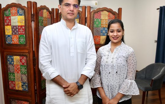 राष्ट्रीय शूटर पलक ने पूर्व डिप्टी सीएम पायलट से की मुलाकात